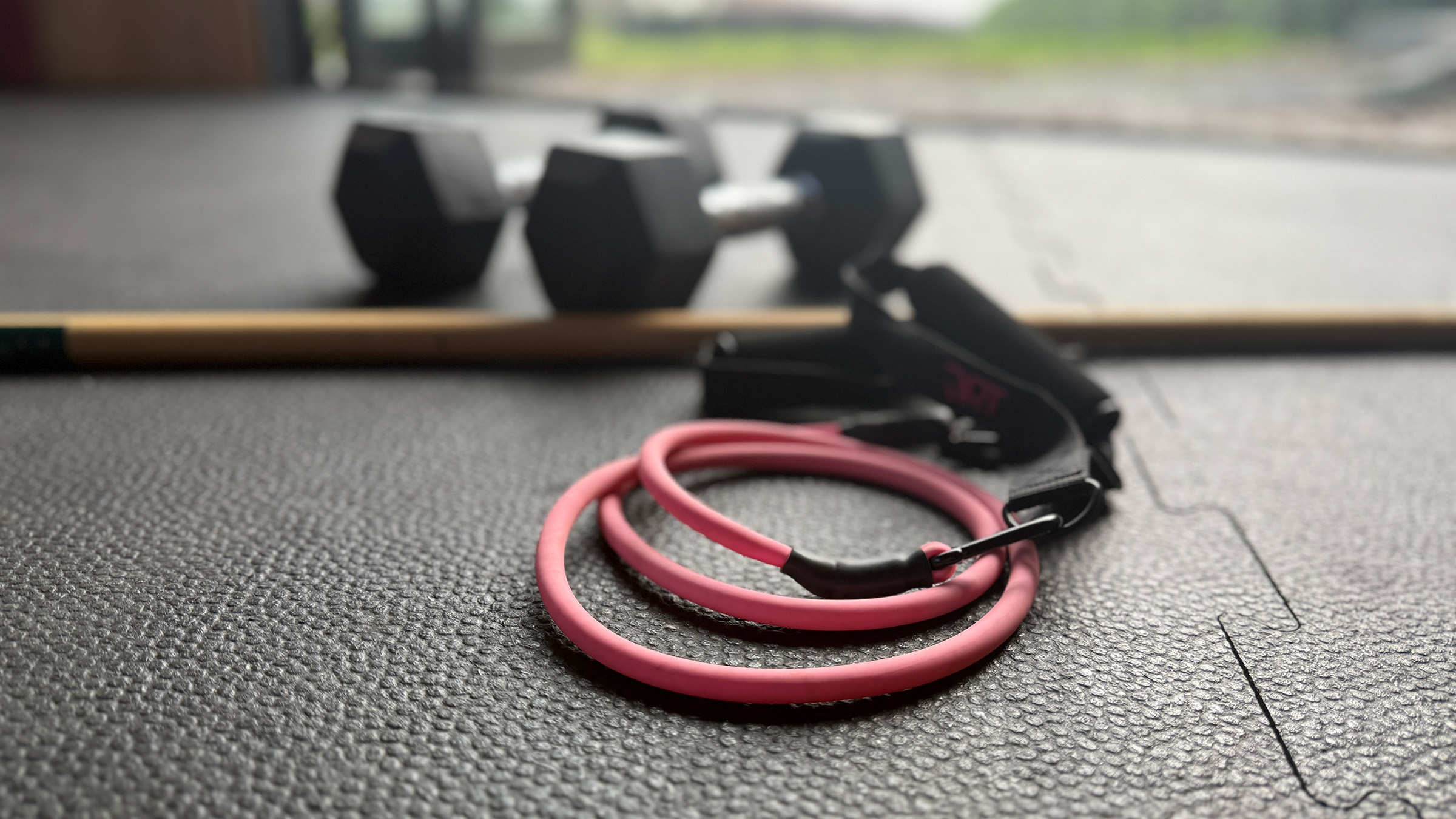 This program uses dumbbells either light for beginners (2 to 4kg) or moderate for intermediate level (4-6kg), a resistance band, a foam roller, a broomstick or dowel, and a wall.